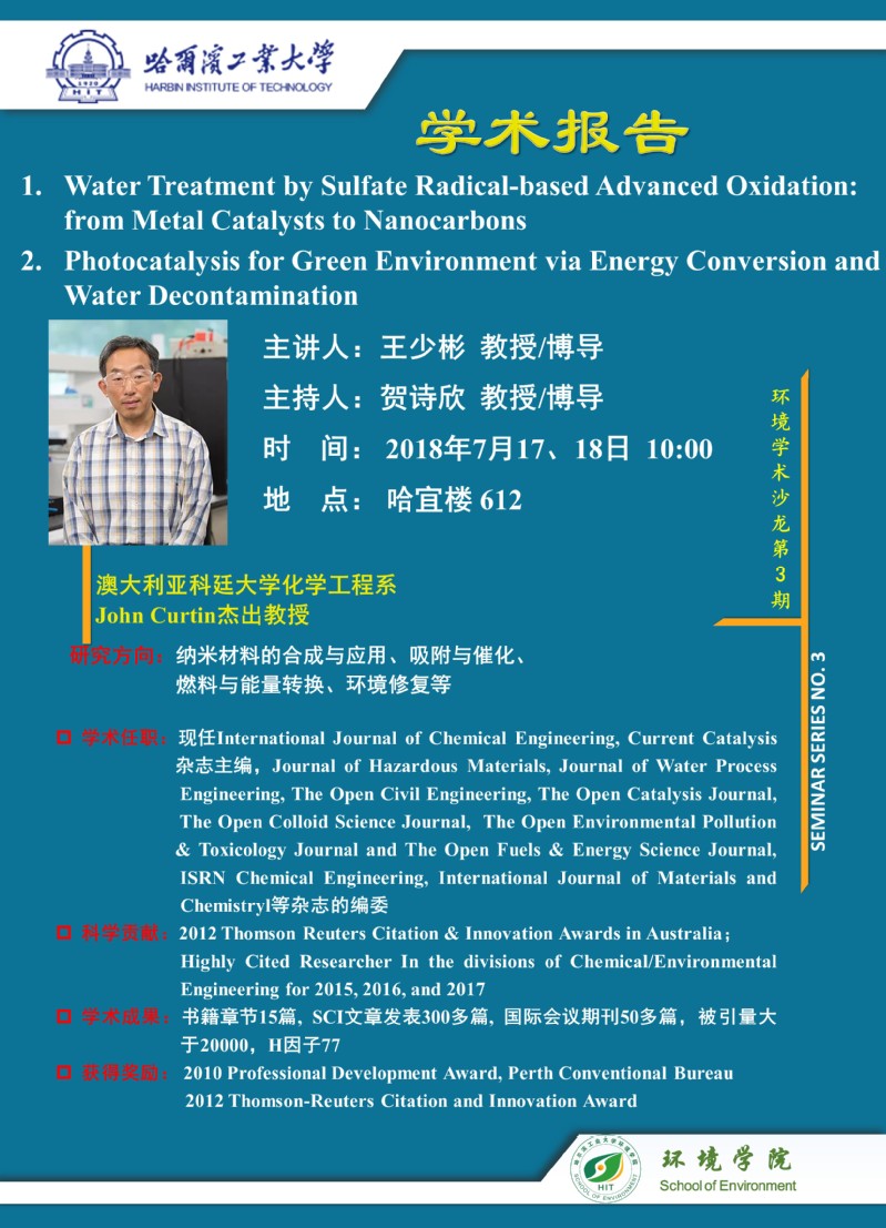 贺诗欣教授邀请,澳大利亚科廷大学王少彬教授将于2018年7月15至20日访问我校,并于17、18日作学术报告,欢迎全校感兴趣的师生参加。学术讲座信息如下: