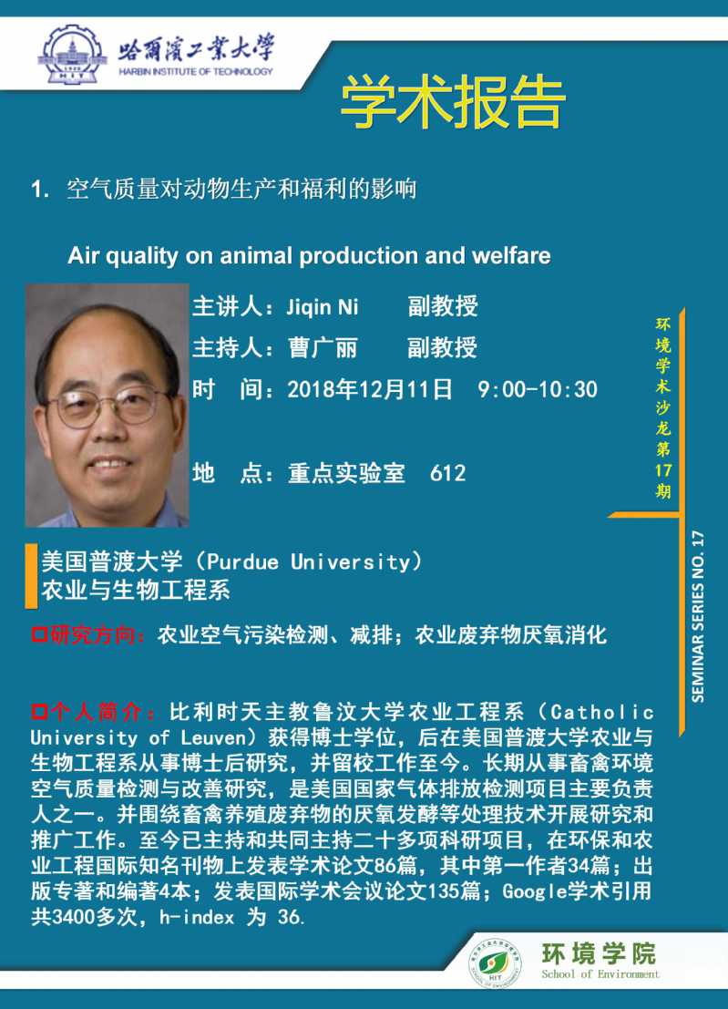 环境学术沙龙第17期——Jiqin Ni 副教授学术报告