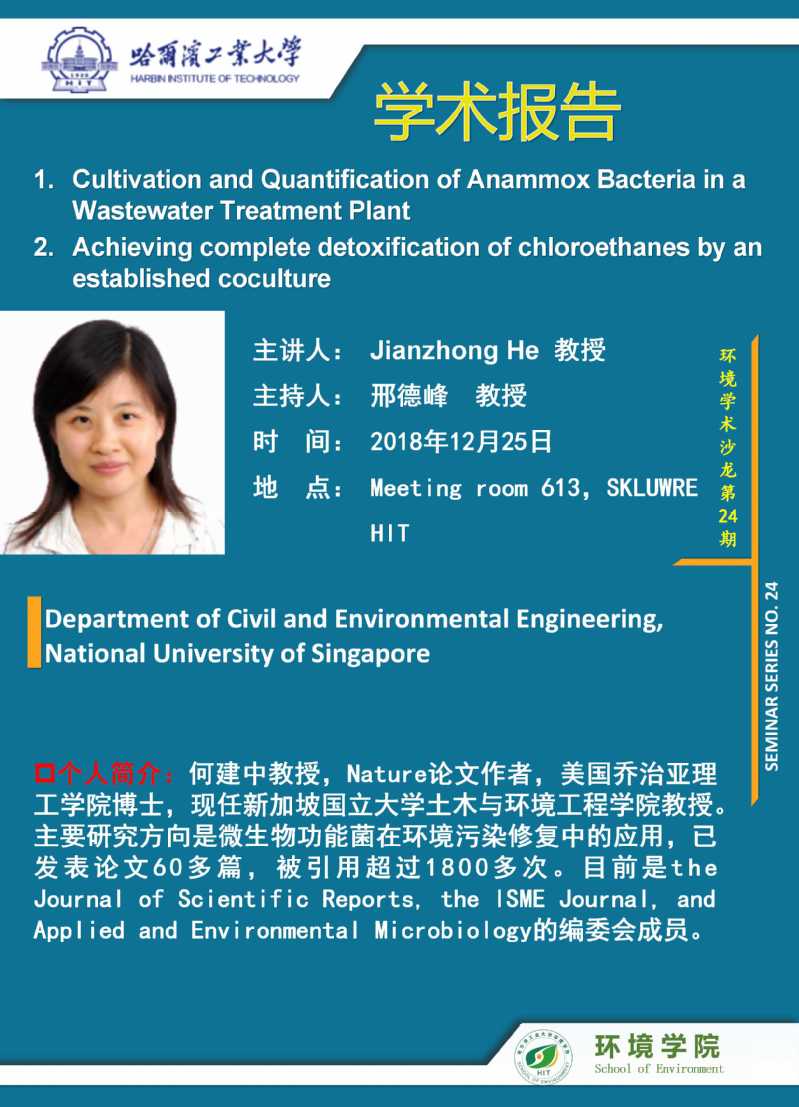 环境学术沙龙第24期——Jianzhong He 教授学术报告