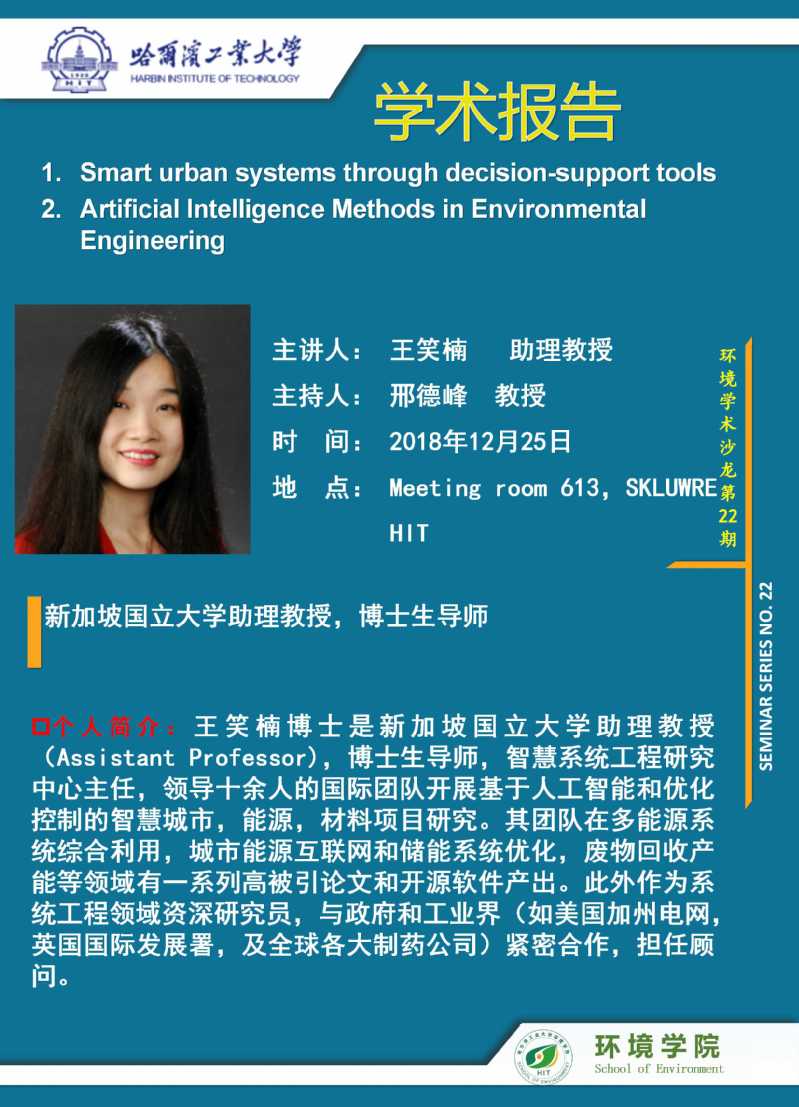 新加坡国立大学王笑楠教授将于2018年12月25日访问彩客网-彩客网比分 并进行学术交流,欢迎全校感兴趣的师生参加。学术讲座信息如下: