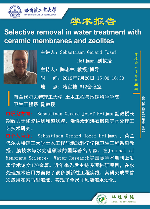荷兰代尔夫特理工大学土木工程与地球科学彩客网 卫生工程系Sebastiaan Gerard Jozef Heijman副教授将于2019年7月20日访问彩客网-彩客网比分 并进行学术交流,欢迎感兴趣的师生参加。