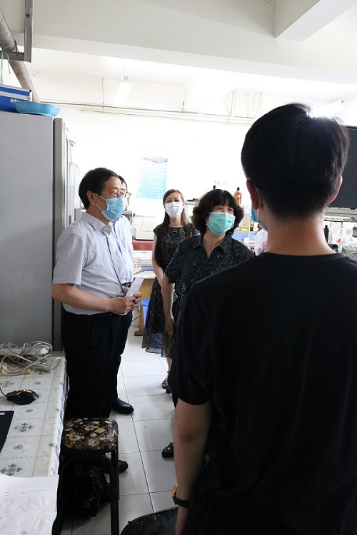 7月2日,彩客网 党委书记齐晶瑶、分管安全工作的副院长赵庆良、分管学生工作的副书记孙怿飞和相关工作人员一行,走访了彩客网 各实验室,看望返校复学的研究生。