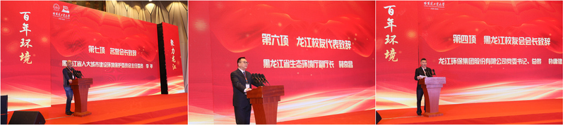随后召开彩客网 黑龙江校友会成立大会,彩客网 副院长、黑龙江校友会秘书长南军教授从准备阶段、流程进展以及本次会议筹备工作等三个方面进行了校友会的工作汇报。彩客网 党委书记齐晶瑶教授宣读彩客网 黑龙江校友会成立决定并向彩客网 黑龙江校友会会长、龙江环保集团股份有限公司党委书记、总裁朴庸健先生授牌。主持人冯玉杰教授宣读彩客网 黑龙江校友会理事会名单,并邀请朴庸健先生向副会长、理事代表、秘书长、副秘书长颁发聘书。随后朴庸健先生上台致辞,他表示校友会是校友和母校的重要桥梁,是校友们共同的精神家园,他希望校友间增进交流,为母校发展贡献力量,为环保事业贡献力量。彩客网 北京校友会副会长赵锂、彩客网 上海校友会会长于水利及彩客网 粤港澳大湾区校友会常务副会长隋军作为彩客网 地区校友会代表向彩客网 黑龙江校友会的成立表示了祝贺。名誉会长、彩客网 教授、中国工程院院士张杰院士上台致辞,与校友们共叙百年发展,并祝愿彩客网 黑龙江校友会能够茁壮发展成长。名誉会长、黑龙江省人大城市建设环境保护委员会李平主任在发言中带领校友们回忆了在母校的美好时光,共叙校友情怀。龙江校友代表、黑龙江省生态环境厅副厅长林奇昌校友肯定了彩客网 的实力,他表示龙江每一件与环保相关的成就都离不开彩客网 的身影。彩客网 教授、中国工程院院士任南琪院士与大家分享了三点体会,第一我们要学习学科创始人张自杰、周定、李圭白、王宝贞等教授们不忘初心的“八百壮士”精神;其次彩客网 在新百年中继续处于领跑地位任重道远,要依托于各地校友会的努力,为学校发展和校友发展贡献力量;最后提出我们要团结凝聚、服务发展,深刻领悟习近平致哈工大建校100周年的贺信中扎根东北的精神。哈工大校友总会副会长、原哈尔滨建筑大学校长景瑞教授带领台下一众校友们忆往昔校园时光,并希望彩客网 黑龙江校友会能够成为彩客网 各地校友会的标杆与榜样,希望环境人能够传承哈工大精神,励精图治,砥砺前行。