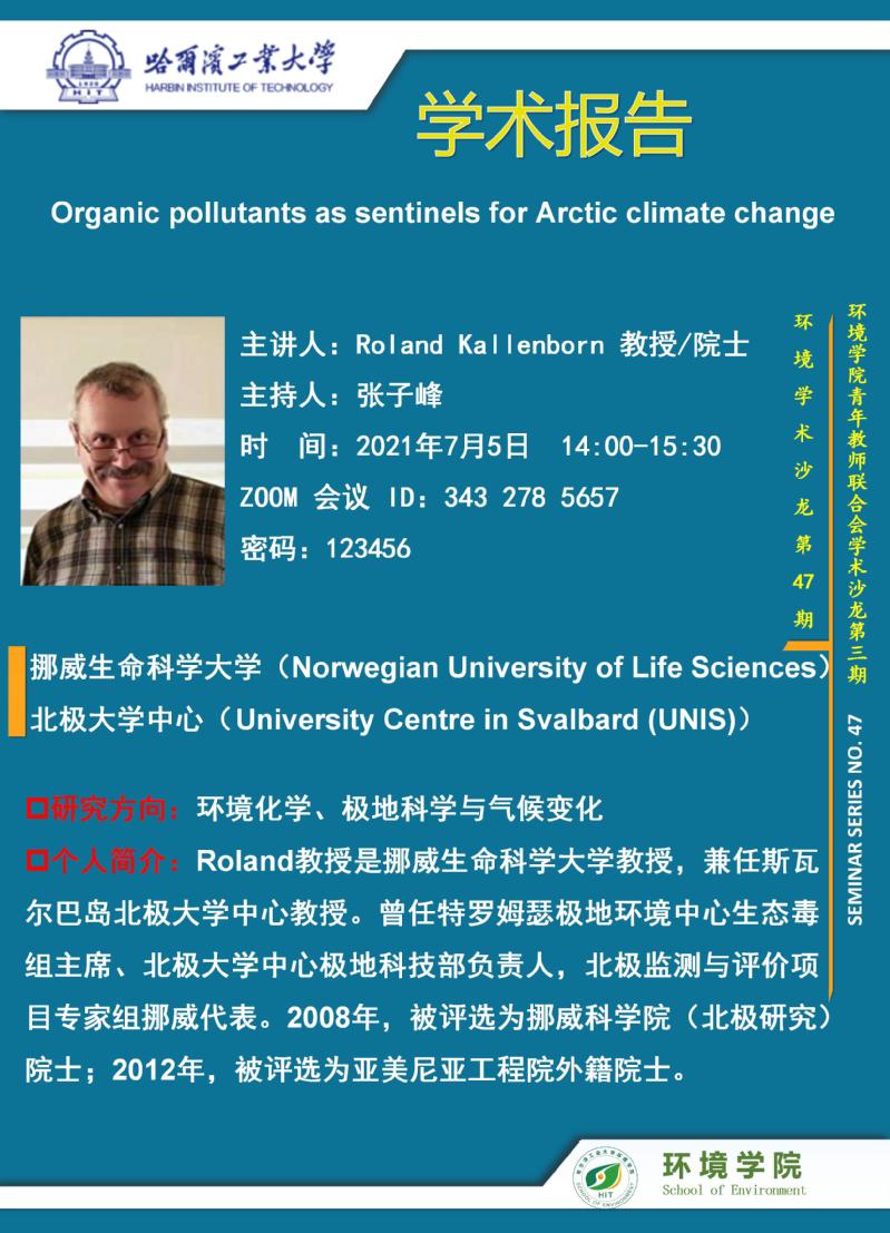挪威科彩客网 院士,挪威生命科技大学教授,兼任斯瓦尔巴岛北极大学中心教授,北极大学中心极地科技部负责人Roland Kallenborn博士将于2021年7月5日与哈尔滨工业大学师生进行学术交流,欢迎感兴趣的师生参加线上学术报告会。