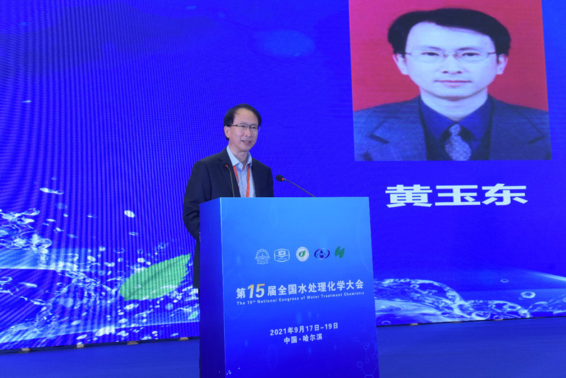 此次会议原计划2020年召开,由于疫情影响三次推迟。但依旧有来自全国各地的院士、知名学者、青年才俊和企业代表等400余人参会,展示了各自的科研成果和应用案例。大会特邀南京大学任洪强院士、哈尔滨工业大学马军院士、中科院生态中心杨敏研究员、清华大学朱永法教授、山东大学高宝玉教授、华南理工大学韦朝海教授和哈尔滨工业大学冯玉杰教授进行了精彩的大会报告,哈工大王鹏教授为特邀报告嘉宾颁发感谢证书。