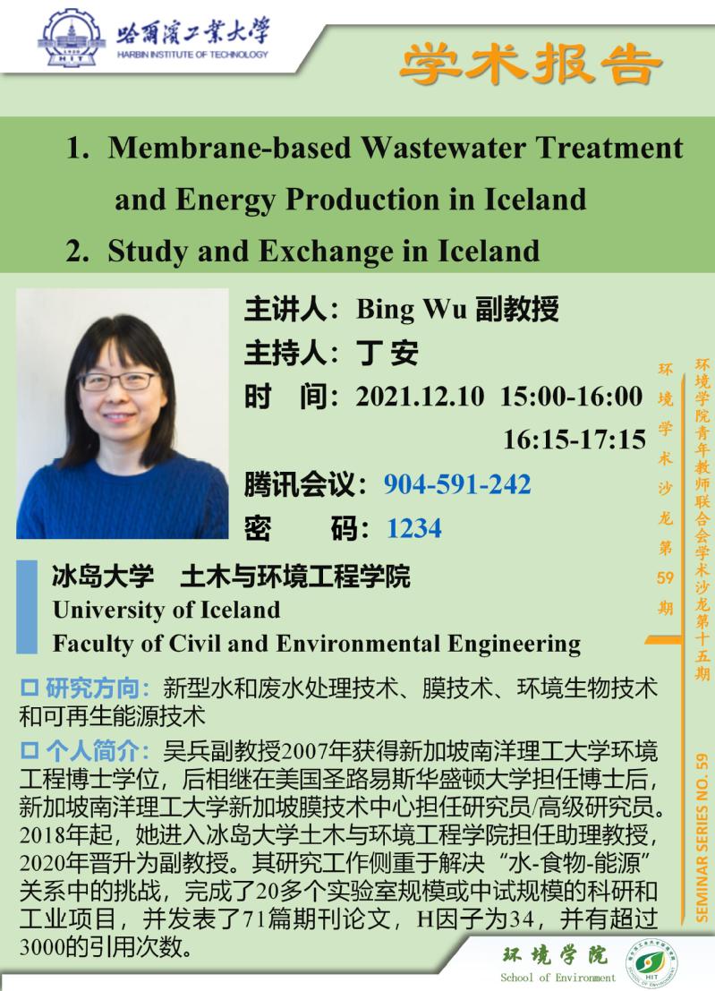 冰岛大学土木与环境工程彩客网 Bing Wu副教授将于2021年12月10日与哈尔滨工业大学师生进行学术交流,欢迎感兴趣的师生参加线上学术报告会。