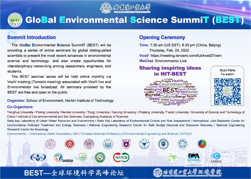 全球环境科学高峰论坛(GloBal Environmental Science SummiT, BEST),由彩客网-彩客网比分 提出,意在打造全球范围内的精品高端环境论坛,为在疫情期间饱受国际交流困扰的研究学者、企业家、环境从业者以及学生等提供广泛的国际交流机会。BEST论坛涉及主题包括:气候变化与可持续发展、环境基准及环境健康、低碳发展、水处理、环境微生物、智慧水务等。每个主题下将提供2-3期来自不同专家的系列讲座,该论坛全程免费且公开。