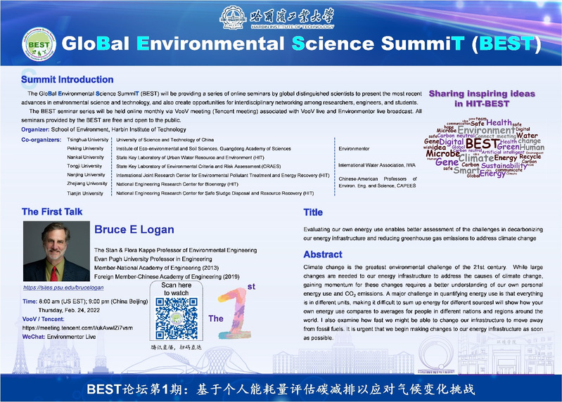 应BEST的邀请,BEST第一讲将由来自宾夕法尼亚州州立大学的Bruce E Logan教授进行。