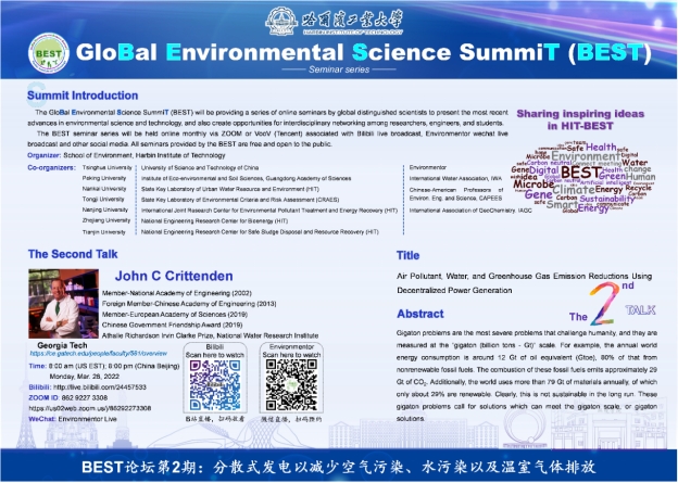 应BEST的邀请,BEST第二讲将由来自佐治亚理工彩客网 的John C. Crittenden教授进行。