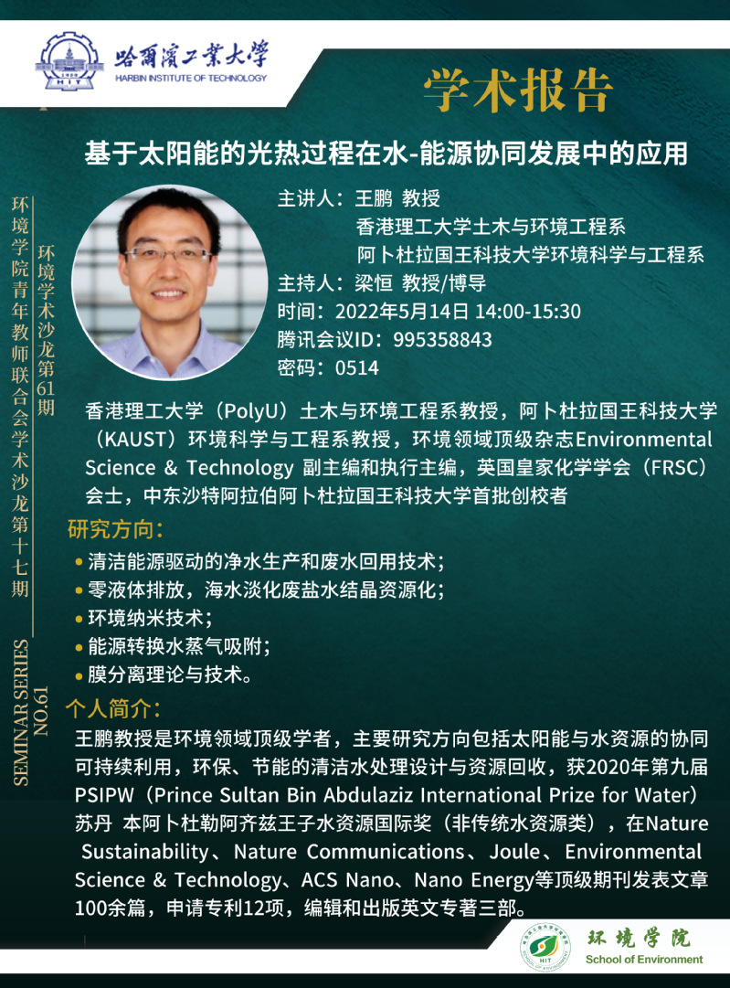 香港理工大学教授、阿卜杜拉国王科技大学教授王鹏老师将于2022年5月14日与哈尔滨工业大学师生进行学术交流,欢迎感兴趣的师生参加线上学术报告会。