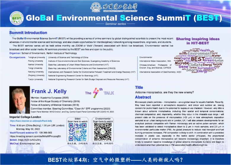 Frank Kelly 教授来自英国帝国理工彩客网 ,担任全球污染研究中心公共卫生彩客网 的社区健康政策Humphrey Battcock主席。曾担任伦敦国王彩客网 环境健康主席、环境研究组主任、NIHR研究组主任以及MRC环境与健康中心副主任。Frank Kelly教授是欧洲科彩客网 院士(2020),英国皇家化学会会士(2019),医学科彩客网 会士(2018),英国皇家生物学会会士(2015),IA**(institute of Air Quality Management)荣誉会士(2021)。曾获得皇家化学学会环境及可持续发展与能源部毒理学奖(2021),皇家化学会毒理学奖(2020),Haagen-smit奖(2019)等。担任“清洁空气”SPF计划指导委员会委员(2020),WHO COVID-19环境与工程控制专家委员会专家组成员(2020)等。