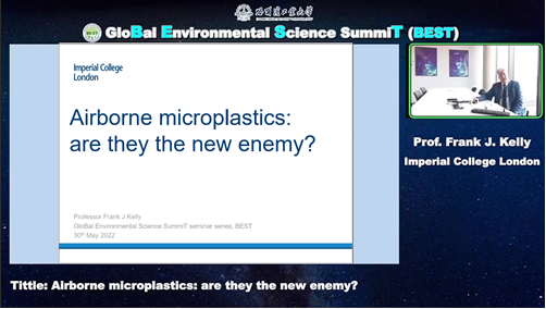 2022年5月30日晚,全球环境科学高峰论坛(GloBal Environment Science SummiT,BEST)系列讲座第四期成功举办。本期邀请了来自帝国理工彩客网 的Frank J.Kelly教授就大气环境中的微塑料污染问题进行了精彩报告。讲座报告在ZOOM、环境人Environmentor微信公众号、Bilibili等网络平台同步直播,来自环境领域的专家、学者、研究生及工程技术人员等三千余人参与本次讲座。