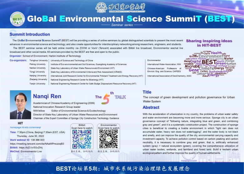 BEST的邀请,BEST第五讲将由来自哈尔滨工业大学任南琪院士进行
