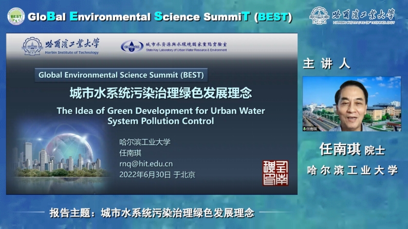 2022年6月30日晚,全球环境科学高峰论坛(GloBal Environment Science SummiT,BEST)系列讲座第五期讲座报告在腾讯会议网络研讨会、环境人Environmentor公众号、Bilibili、寇享学术等网络平台如期举行,来自环境领域的专家、学者、研究生及工程技术人员等六千余人参与本次讲座。本期报告嘉宾为中国工程院院士、哈尔滨工业大学教授、城市水资源与水环境国家重点实验室主任任南琪教授。