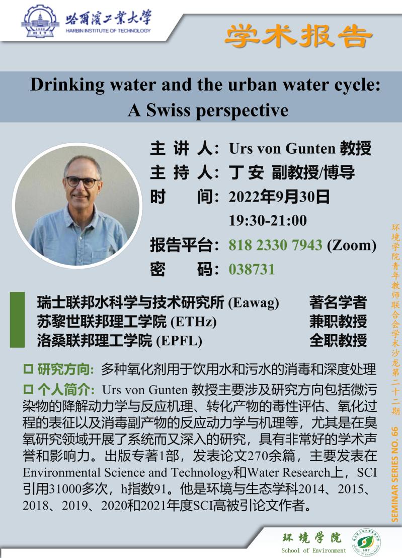 洛桑联邦理工彩客网 (EPFL)教授,苏黎世联邦理工彩客网 (ETHz)兼职教授,瑞士联邦水科学与技术研究所(Eawag)著名学者Urs von Gunten将于2022930哈尔滨工业大学师生进行学术交流,欢迎感兴趣的师生参加线上学术报告会。