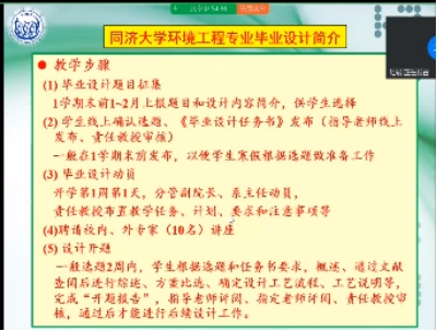 陆斌老师做了《同济大学环境工程专业毕业设计教学方法的探讨》的报告。详细介绍了同济大学毕业设计全过程,涵盖了毕业实习考核、专家座谈、开题报告撰写、图纸绘制、小组答辩等内容。针对高校毕业设计指导老师普遍缺乏工程经验、毕业设计工作量大指导教师精力不足等主要问题,提出了一系列改进措施。