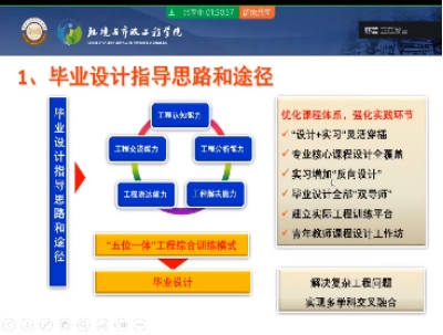 韩芸老师做了《如何有效开展毕业设计指导的特色做法》的报告。介绍了西安建筑科技大学开展毕业设计的工作做法,通过在毕业设计中安排实习增加了反向设计环节、设立青年教师课程设计工作坊、双导师制度并建立了跨专业联合毕业设计等举措,实现了毕业设计的多学科交叉,培养学生多学科背景下解决复杂工程问题能力。