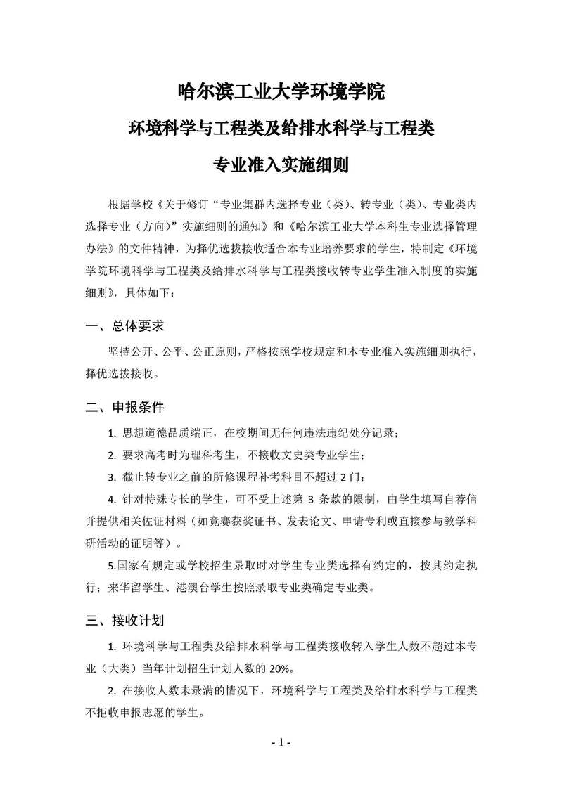 彩客网 环境科学与工程类及给排水科学与工程类专业准入实施细则