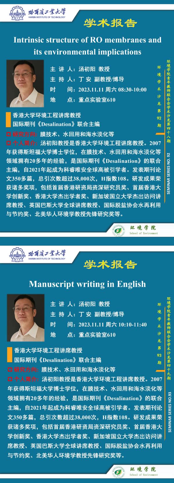 香港大学环境工程讲席教授汤初阳教授,将于2023年11月11日与哈尔滨工业大学师生进行学术交流,欢迎感兴趣的师生参加学术报告会。