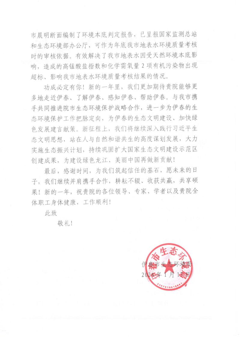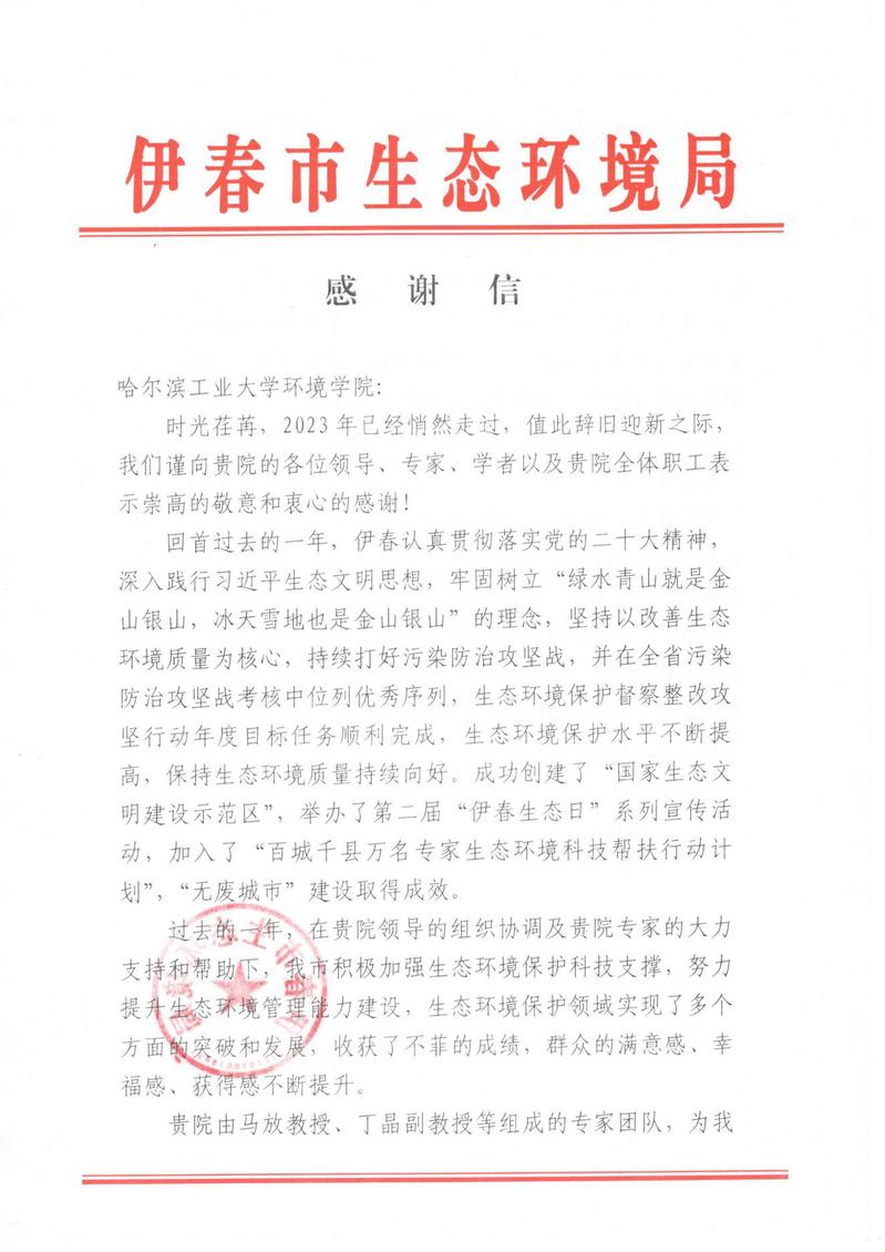 伊春市生态环境局感谢信