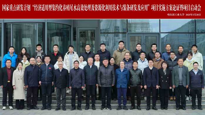 2025年3月28日,由哈尔滨工业大学牵头的国家重点研发计划“海洋农业与淡水渔业科技创新”重点专项“经济适用型集约化养殖尾水高效处理及资源化利用技术与装备研发及应用”(2024YFD2401300)项目实施方案论证暨项目启动会在哈尔滨工业大学召开。来自10家项目参与单位的40余名学术骨参加了项目启动会。